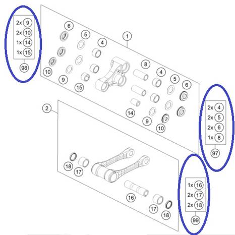 Ležaji zadnje vilice –set TE-FE-TC-FC